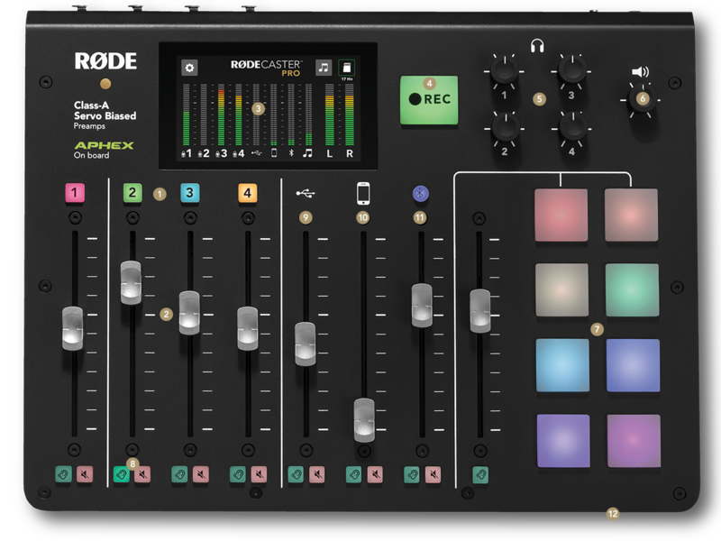 Rodecaster Pro Top View with feature callouts